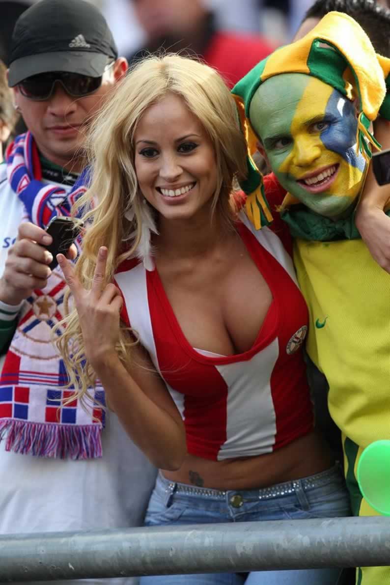 Patty Orué no tuvo reparos en saludar efusivamente a los hinchas brasileños.